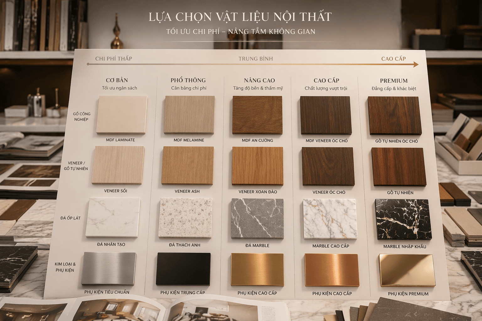 2. Chi phí phát sinh khi nâng cấp vật liệu nội thất