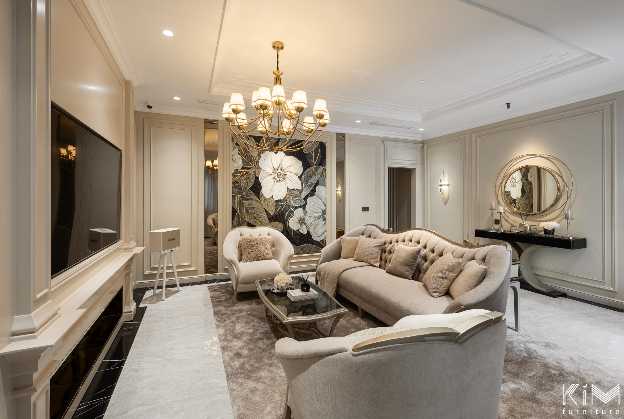 Biệt thự Sun Grand Bay Hạ Long là minh chứng nổi bật cho năng lực thiết kế thi công nội thất biệt thự Hạ Long của Spador Design & Build kết hợp cùng Kim Furniture. Dự án nằm tại Bán đảo 3, khu đô thị Marina, Bãi Cháy – vị trí đắc địa giữa kỳ quan thiên nhiên Hạ Long. Với diện tích 300m², ngôi biệt thự được khoác lên mình phong cách nội thất cổ điển sang trọng pha chút hơi thở cổ tích, tạo nên không gian sống vừa lộng lẫy, ấm áp vừa gợi cảm giác như bước vào một câu chuyện thần tiên. Sự thành công của công trình không chỉ đến từ thiết kế tinh tế mà còn nhờ quá trình thi công chỉn chu và sự phối hợp ăn ý giữa hai đơn vị hàng đầu trong lĩnh vực nội thất.